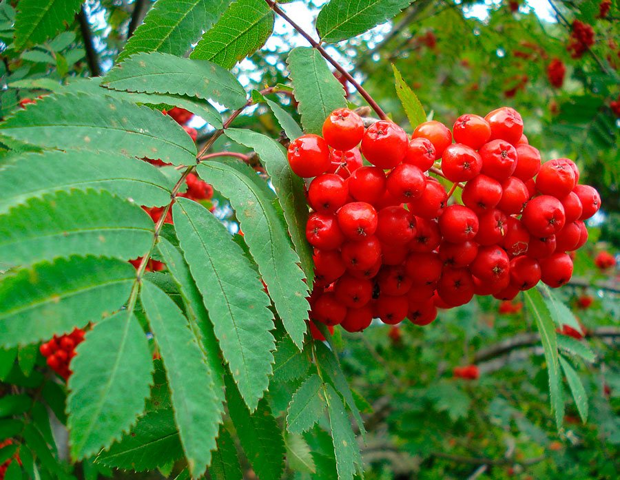 Red rowan is highly valued for its decorative qualities and beneficial properties. Rich in phytoncides, rowan berries can be used to normalize hormonal balance and strengthen the nervous system. They are often used as a hemostatic, diaphoretic, and laxative.