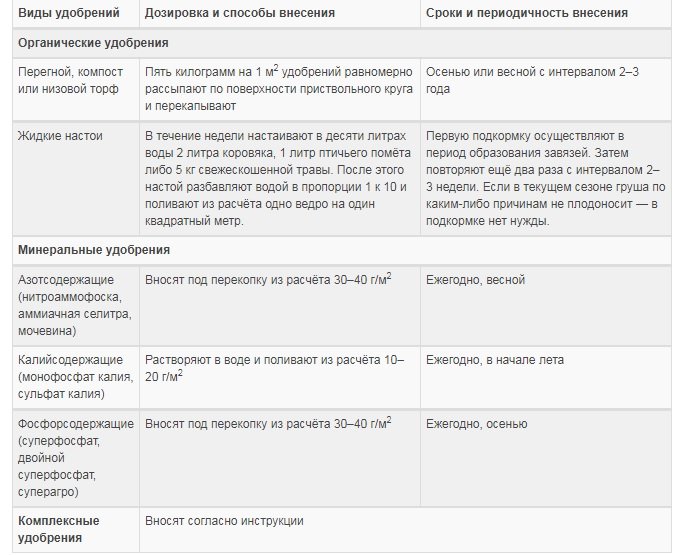 Adding nutrients to the soil promotes increased yield and improved fruit flavor. Below is an optimal fertilizing plan for the Chizhovskaya pear: