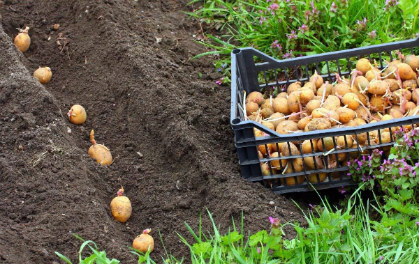 Planting potatoes in open ground is usually carried out between April and May. The weather should be warm for the soil to warm up by this point. The optimal soil temperature is 10–12 degrees Celsius at a depth of about 10 centimeters.