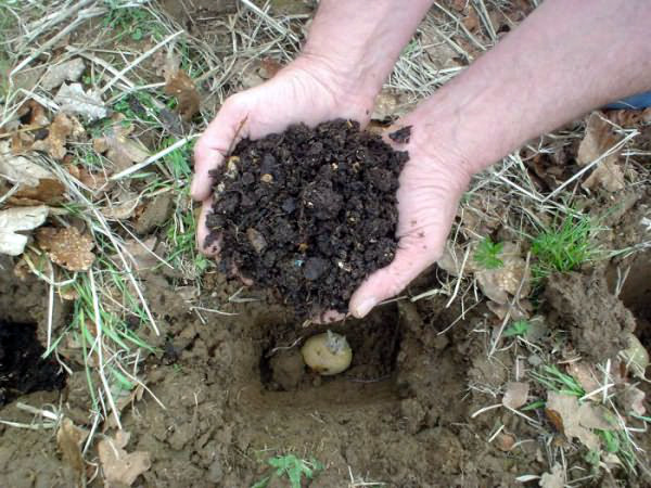 Soil condition greatly affects crop yield. To improve soil fertility, first of all, you need to till the soil and loosen it evenly. The deeper you dig the soil, the better. The optimal depth is 20-25 centimeters. The tubers should be placed in individual holes up to 10 centimeters deep. This will ensure free flow of oxygen and water to the roots. After digging the holes, you can add wood ash to the soil (a small handful per hole is sufficient). This natural fertilizer enriches the soil with essential micronutrients for plant growth.