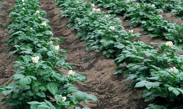 Once the last threat of frost has passed, you can begin planting potatoes in open beds. This should be done in the third ten days of May, when the weather has warmed up sufficiently. Don't forget to prepare the soil by thoroughly digging and loosening it, and adding organic fertilizer to the holes. Plant the potatoes in shallow (about 10 cm) holes, thoroughly moistened beforehand. Firm the plants down so that only the top three leaves remain above the surface. It's best to provide additional protection for the bed by creating a small greenhouse. This will help the young plants establish good roots and become strong. Remove the cover once the seedlings begin to actively develop and become fully established. Further care consists of regular watering, loosening the soil, and removing weeds. However, you should also monitor for possible insect attacks.