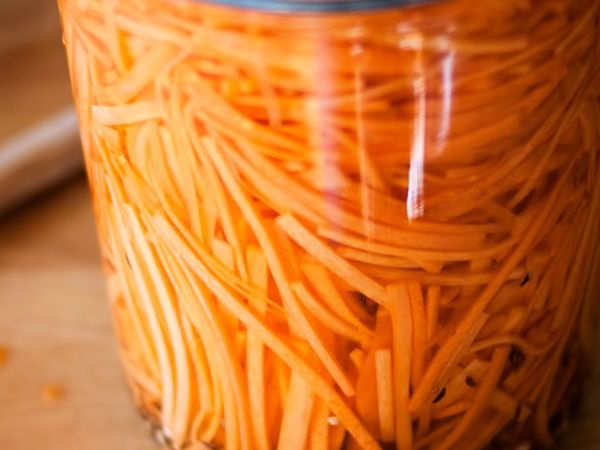 Our carrot salad is a modified version of the traditional Korean dish kimchi, whose main ingredient is cabbage. For winter preserves, choose sweet and juicy vegetables. Grate them only on a special grater. Finely ground spices are also recommended. Most of the time is spent chopping the vegetables, adding onion and garlic, seasoning them, and letting them sit, after which the finished salad is jarred.