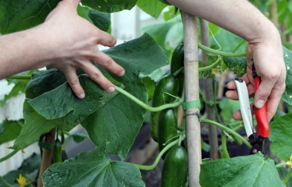Self-pollinating or parthenocarpic cucumber varieties are grown on a single stem. This stem produces a third of the crop, with the remainder coming from shoots located on the sides.