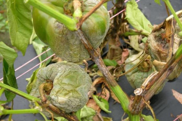 Late blight poses a particular threat to peppers. This fungal disease develops if proper care for seedlings is not followed. It can be triggered by low temperatures and dampness. If spores remain in the soil from the previous season (for example, after potato harvesting), the pepper crop will be at increased risk.