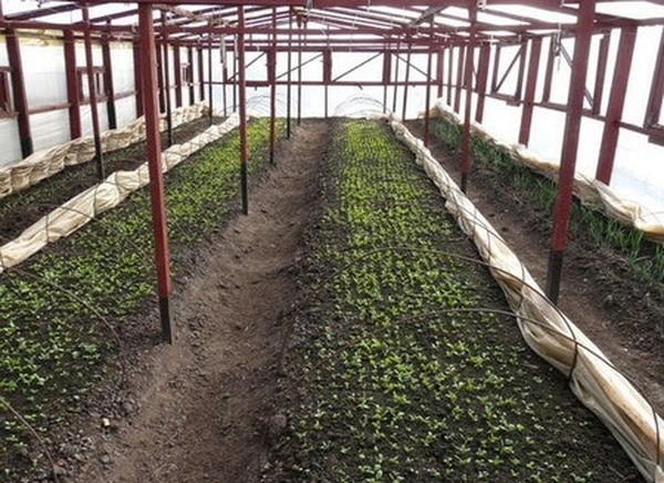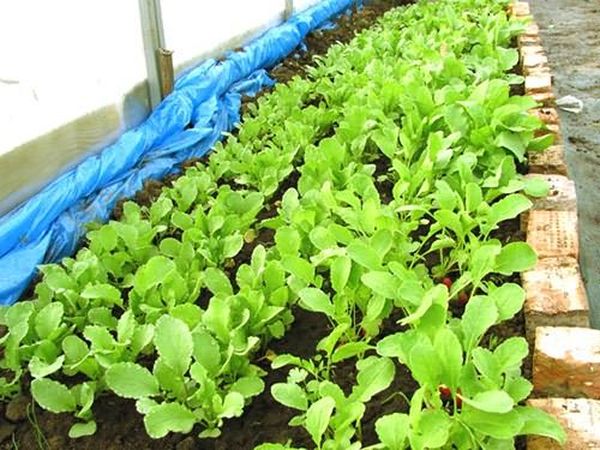 If the greenhouse has a good heating system, radish harvesting is possible year-round. After the last frost, remove any remaining snow from the greenhouse, repair the frame if necessary, and cover it with plastic. Planting begins when the soil is soft and at least 3 cm deep. Sow the seeds evenly in prepared furrows. The optimal seeding depth is up to 1.5 cm.