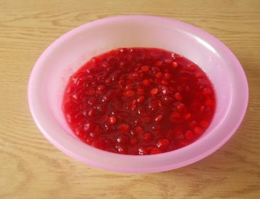 - Prepare sweet syrup (0.4 l water/300 g sugar).