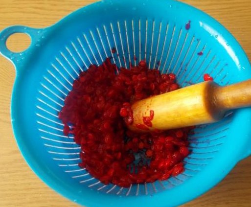 - Mash 2.5 kg of berries thoroughly to release juice.