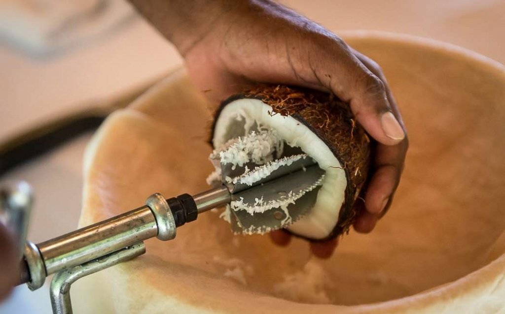 For masks, it's best to use natural coconut shavings, without additives or fragrances. To make them at home, split a peeled coconut, drain the liquid, then scrape out the pulp, grate it, and dry it in the sun or oven.