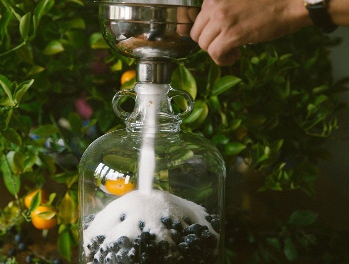 - The berries are crushed, 500 g of sugar and water are added, and they are left in a warm place for 10 days.