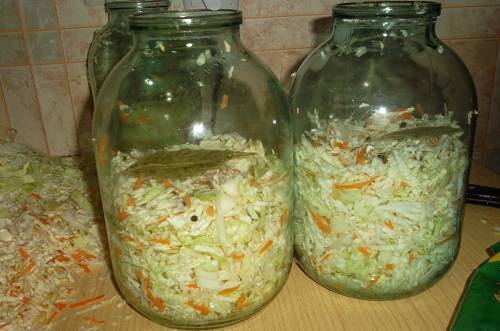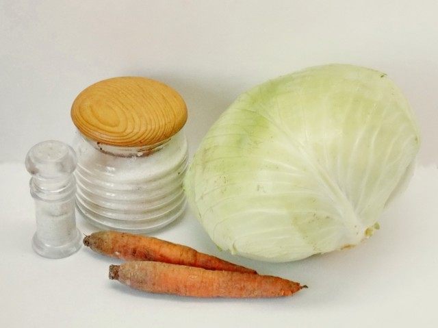 - Mix three kilograms of cabbage, cut into small pieces, with one kilogram of coarsely grated carrots. Add a few grinds of black pepper.