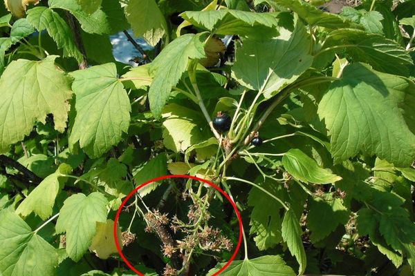Young currant buds can be attacked from the inside by bud mites. Externally, the presence of this pest can be easily detected by unusually enlarged and round buds. These should be removed immediately. If the entire bush is already affected, it will have to be dug up and burned. Garlic is often planted between the plants as a preventative measure.