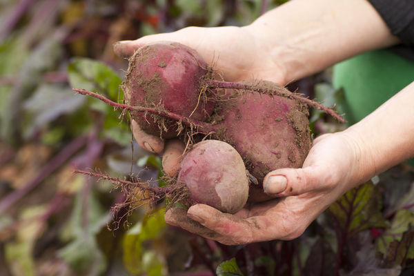 On a dry, sunny day, the beets are lifted with a pitchfork, removed, and left to dry in the garden bed. They are then cut or plucked by hand (this method is considered less damaging), leaving at least 2.5 cm of stalks. They are shaken free of any remaining soil, and sorted.