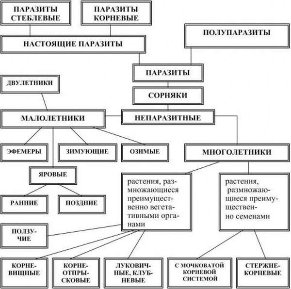 In botany, weeds are classified in several ways, one of which is based on lifespan. Weeds are classified as perennial and biennial. The latter are divided into four categories: