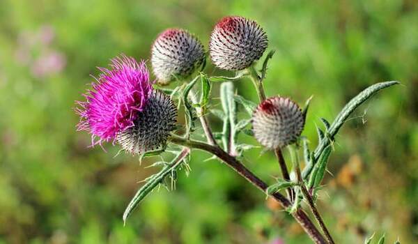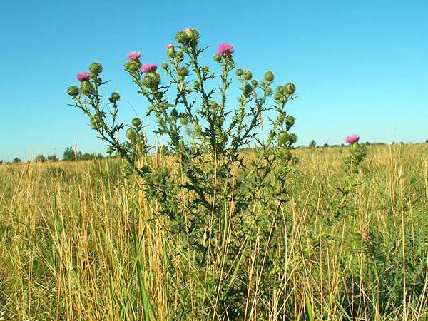 A perennial thorny weed with a strong rhizome and bright yellow flowers. It grows up to two meters. It prefers moist, nutritious soil. Sometimes it grows abundantly in marshy areas. Despite its weedy nature, it is a good honey plant.