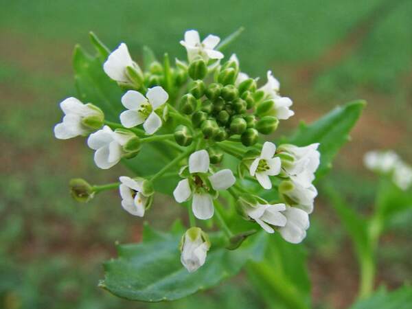 A very resilient weed, it grows in clumps, forming small patches. It can quickly choke out other crops. It blooms with small, snow-pink flowers.