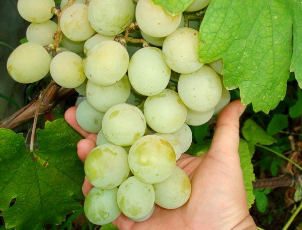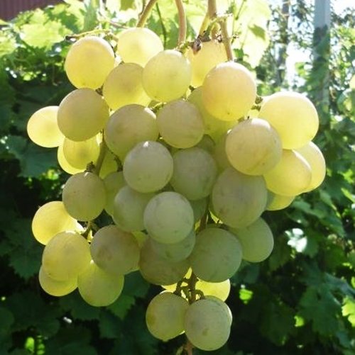 An early-ripening (110-115 days) hybrid with beautiful conical clusters weighing 1.1-1.2 kg. It was bred by crossing Kesha 1 with Kishmish. It is known as Zlatogor, or Muscat, because its Muscat flavor is more pronounced than that of other varieties. The berries are amber-colored and very sweet.