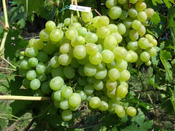 Kesha grape clusters vary; there is no standard. They can be conical or cylindrical, but are more often shapeless, weighing 0.6-1 kg. The berries are large, up to 3 cm in diameter and weighing 9-15 g, and greenish-yellow in color. The pulp is tender and sweet (with over 20% sugar), and there are few seeds. The bunches do not fall apart or become crushed during transportation and can be stored refrigerated for about a week.