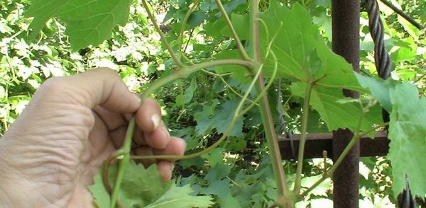 When a gardener plans to prune grapevines, they should also remove side shoots. In July, remove the lateral shoots that emerge from the axillary buds. Fragile branches are broken off by hand, applying pressure to the base with the thumb. It's important not to remove the shoot entirely, but to pinch it back so that 2-4 lower leaves remain intact. Pinching out the side shoots leaves no wounds.