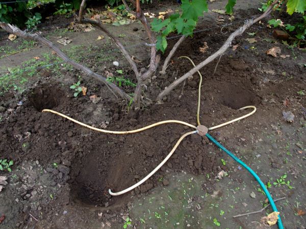 Not every gardener has the means to install a sprinkler system—it's too expensive for small plots and only moderately effective. The most convenient way to water grapes during the summer ripening period is with a drip irrigation system. This method allows the vines to have individual holes through which water is evenly distributed. This allows for precise control of the amount of moisture in a specific area. Unlike previous methods, not a single drop evaporates.