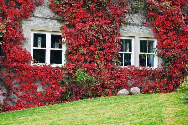Virginia creeper is characterized by its pointed leaves, reminiscent of maple. In summer, its leaves are green, but as winter approaches, they turn a rich crimson. Before planting Virginia creeper, ensure there's a suitable vertical support or trellis nearby—the vines need something to cling to. This variety is a vigorous grower, so you'll need to prune it regularly, otherwise it will overgrow the available space.