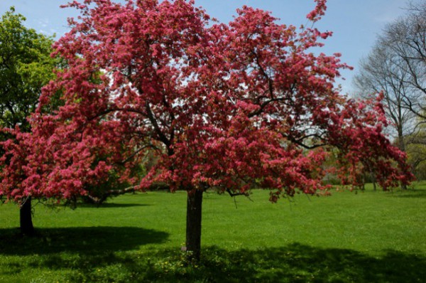 In the spring, it's essential to spray with insecticides. Avoid chemical pest control during the flowering and fruiting periods. Although the fruits of this variety are generally not eaten, they are eaten by birds. Birds are known to rid the garden of unwanted insect pests. Chemicals can harm the birds. Keep in mind that brightly colored apples may attract the attention of a child, who might pick and eat an insecticide-treated apple.