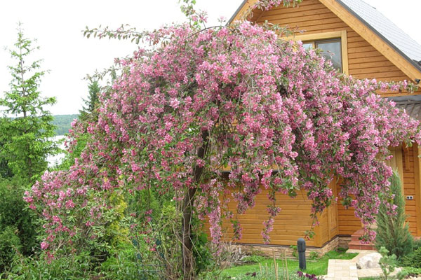 Many gardeners note that this is the most beautiful specimen with a weeping crown. Therefore, it is widely used in landscape design. The foliage is a rich red, but by autumn it has a green tint, gradually turning emerald. Both the flowers and fruits have a purple tint, adding to the appeal of this Royal Beauty.