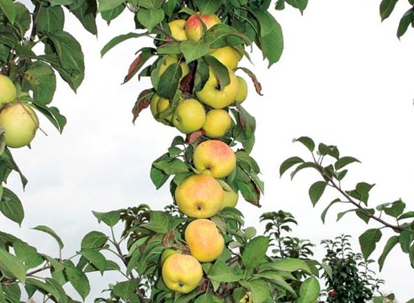 When discussing excellent columnar apple varieties, the Medok variety deserves special mention. It is highly prized by gardeners in central Russia and the Moscow region. The fruits ripen in late August to early September. They are yellow, sweet-flavored, and have a distinctive honey aroma. They can be stored for up to one month. The yield is up to 10 kg of fruit from each crop. Each apple averages about 250 grams. The variety is frost-hardy and has good pest resistance. The fruits can be eaten fresh, dried, canned, or incorporated into various dishes.